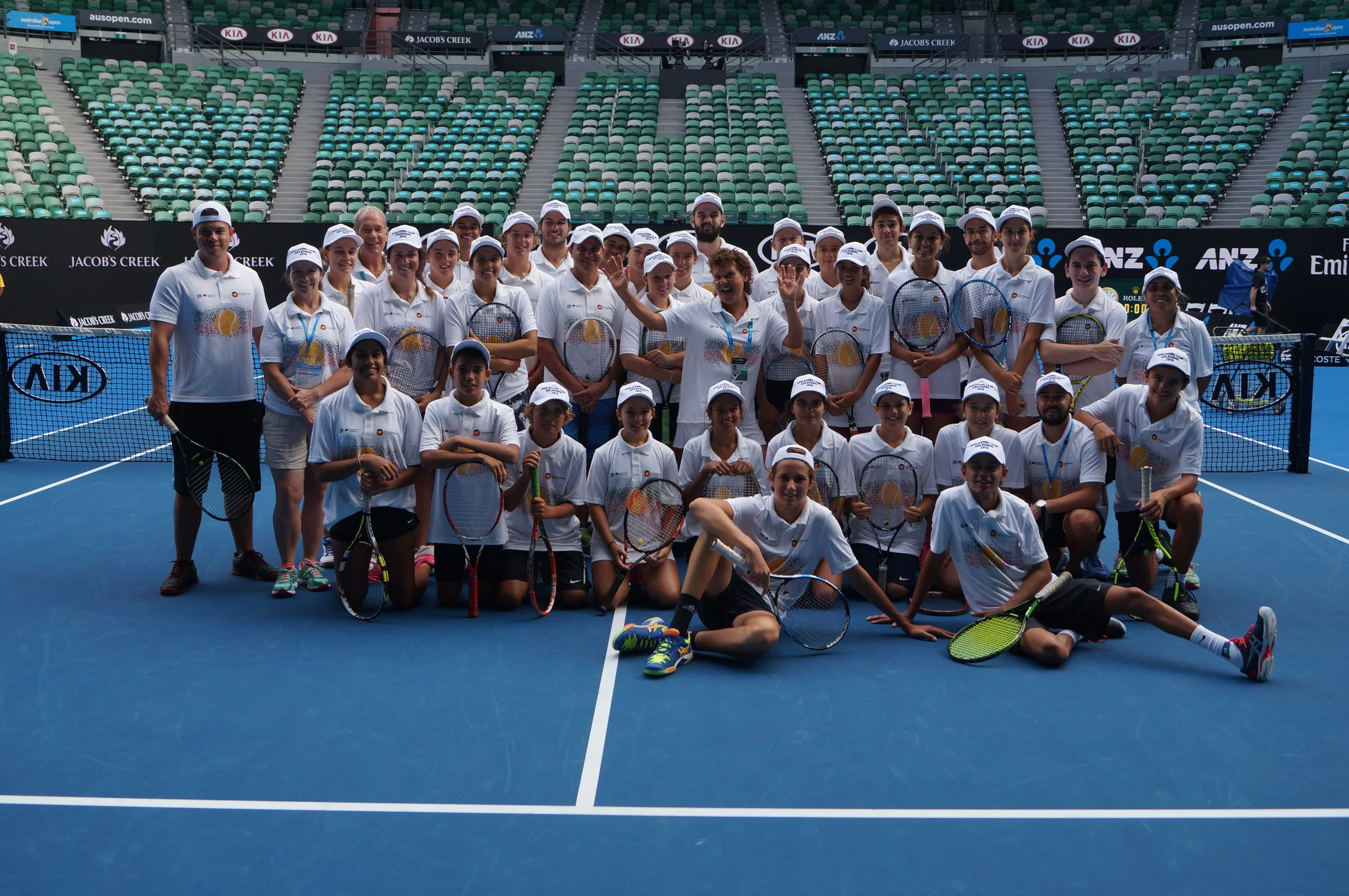 "Just another day at the GNDC - Playing and posing on Rod Laver Arena in front of the "Sunrise Show" cameras!!"