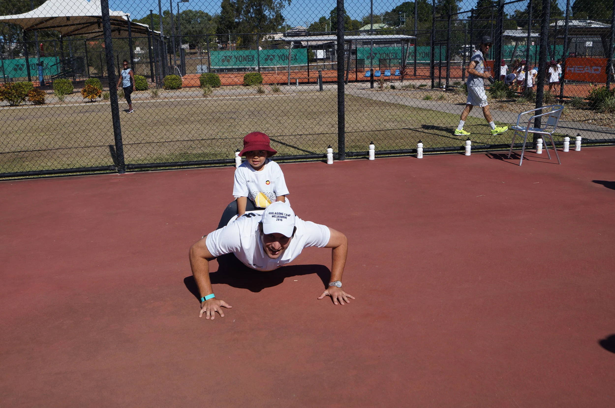 Silly face time after the grass court session at GNDC 2015